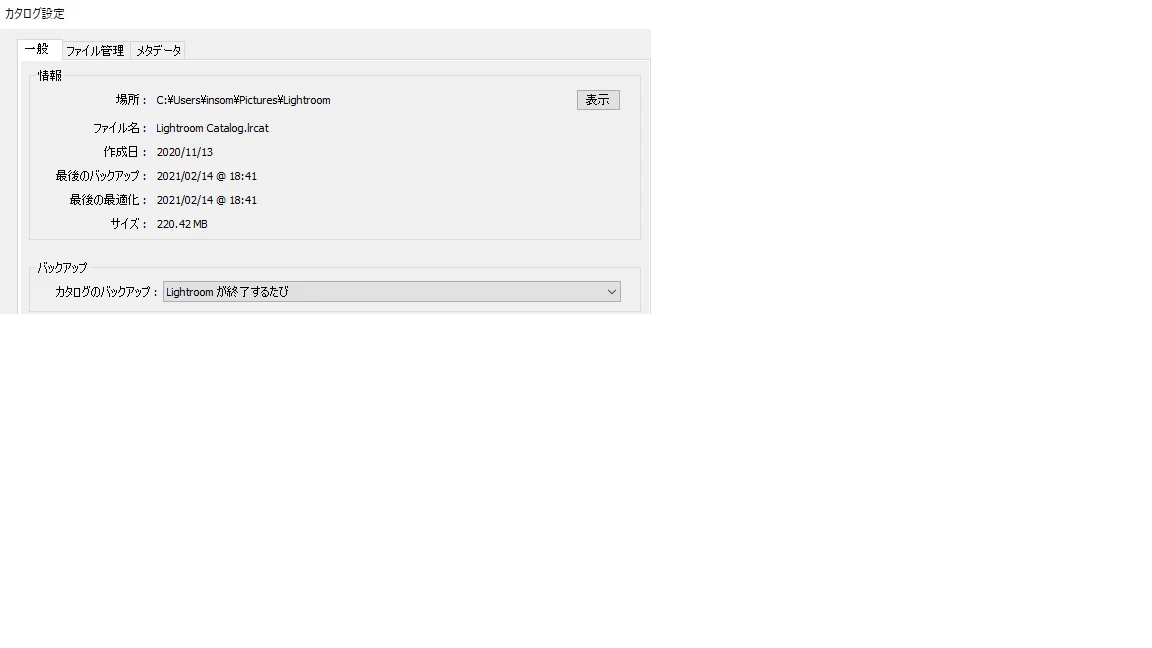 LRは問題なく使えていますが、カタログの日付が更新されていないことに気が付きました。