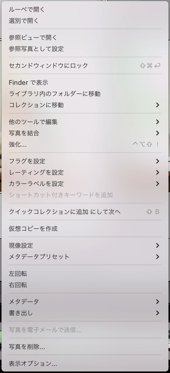 そして、ギャラリー上で右クリックしたメニューにそもそもスタックが出てこなくなりました。(写真2枚目)