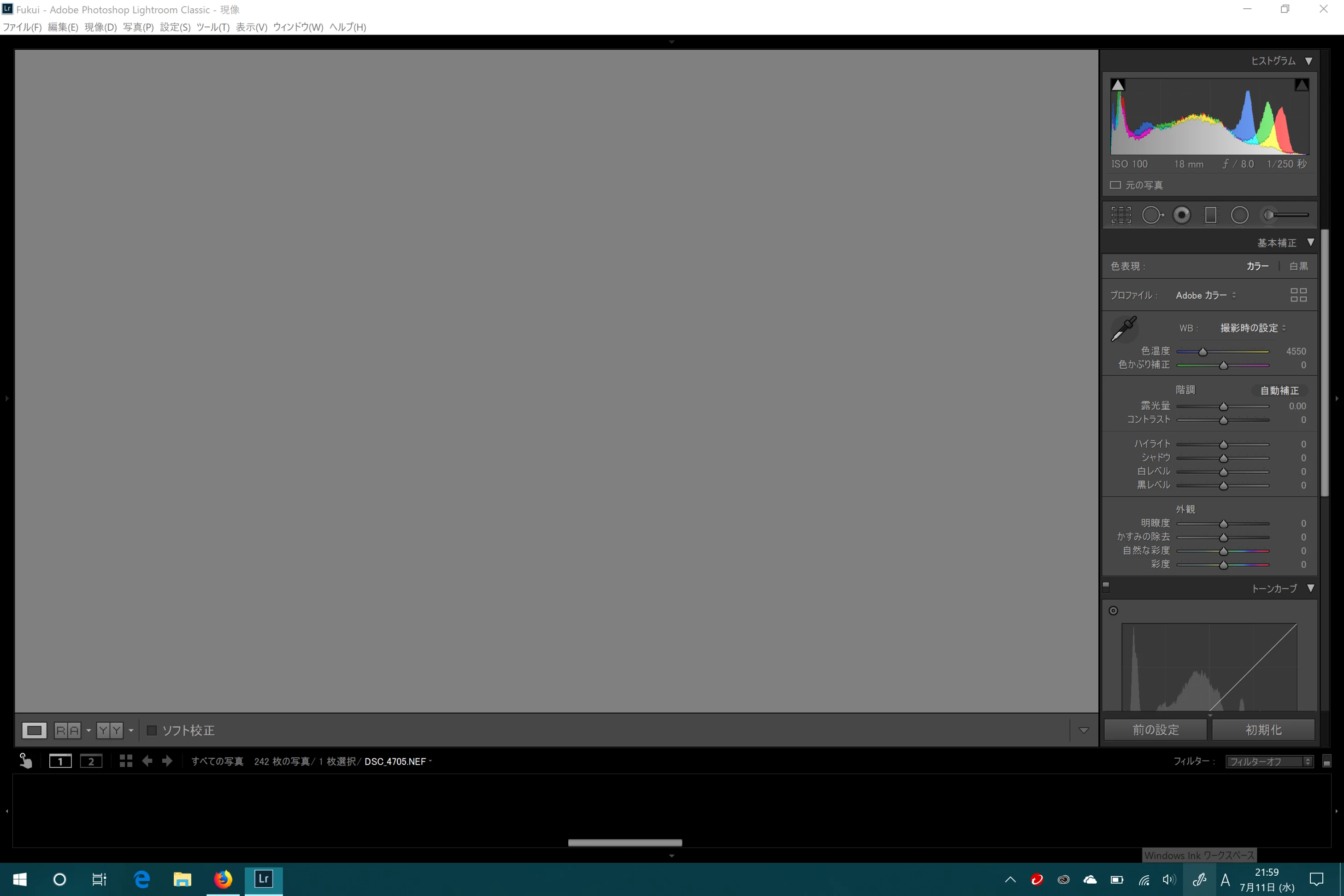現像画面の右側のツールを除いてすべての写真の表示が消えてしまいます。