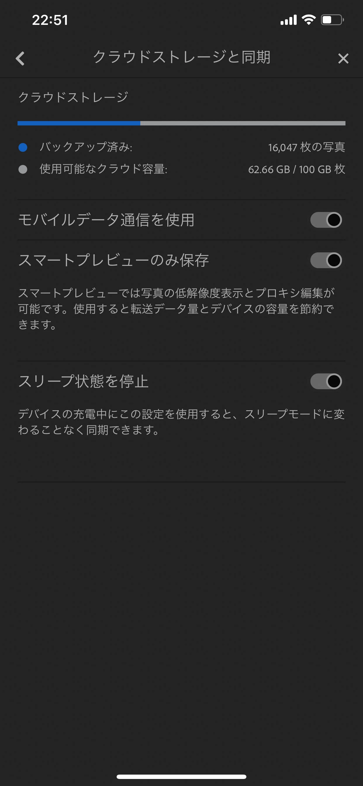 当方のiPhoneのLightroomアプリのSSを貼ってみました。 Storage使用容量もそのものです。 が、