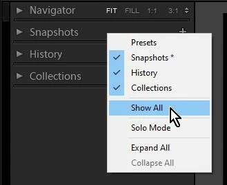 カタログ、フォルダ等のパネルがあるところに、プリセットパネルがそもそもありません。【ファイル】の中の【現像プロファイルとプリセットを読み込み】も選択できません。