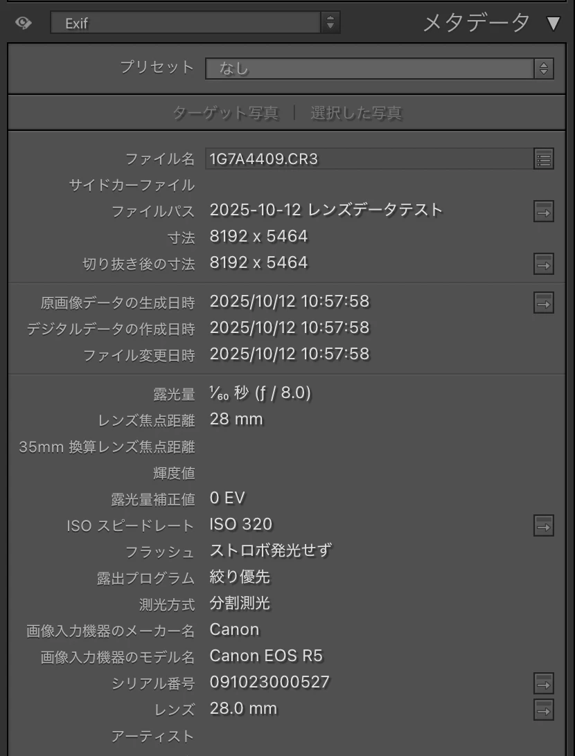 メタデータ(exif)のレンズについて