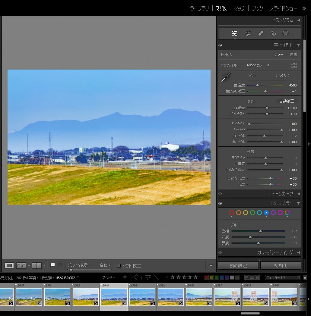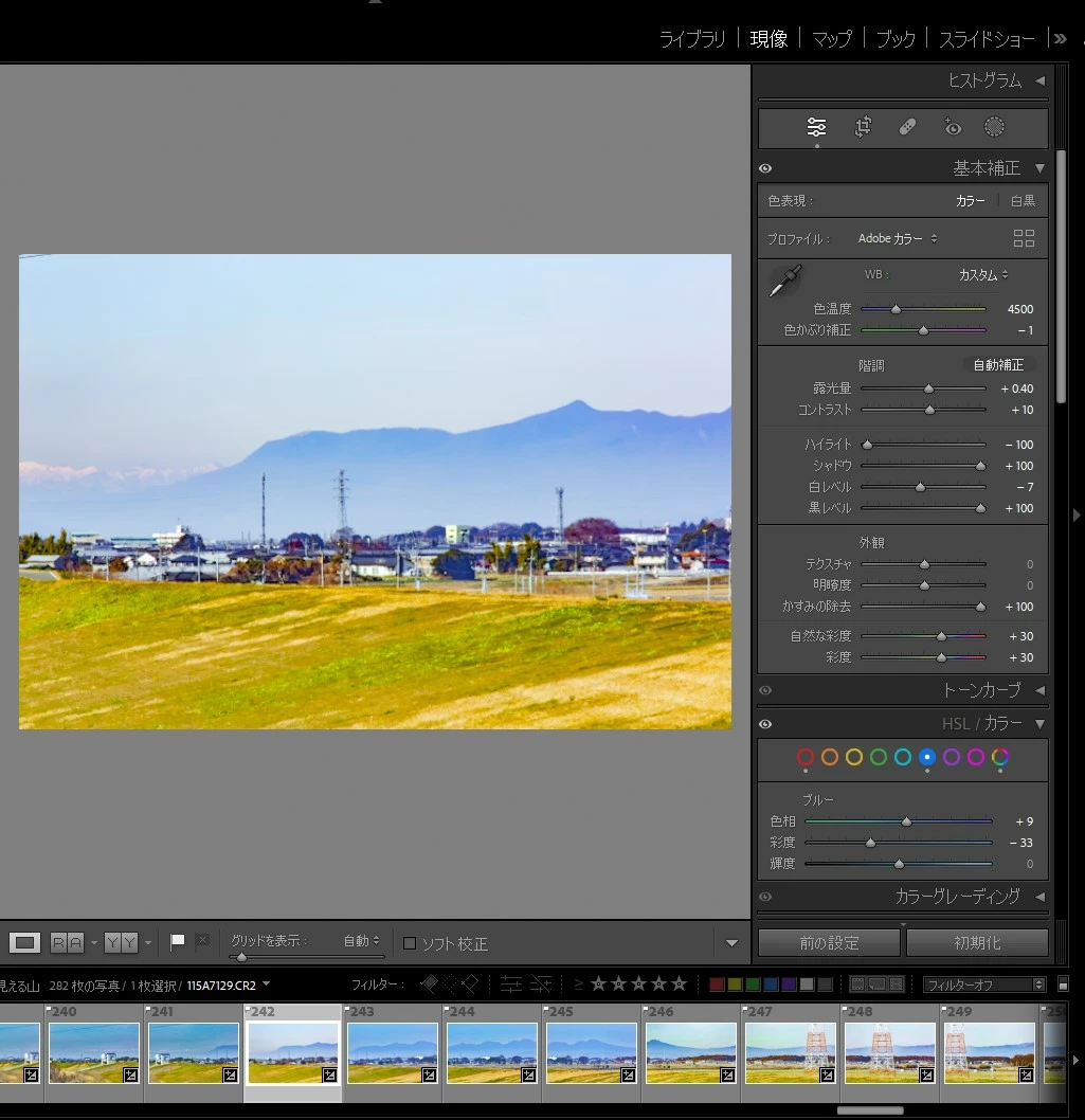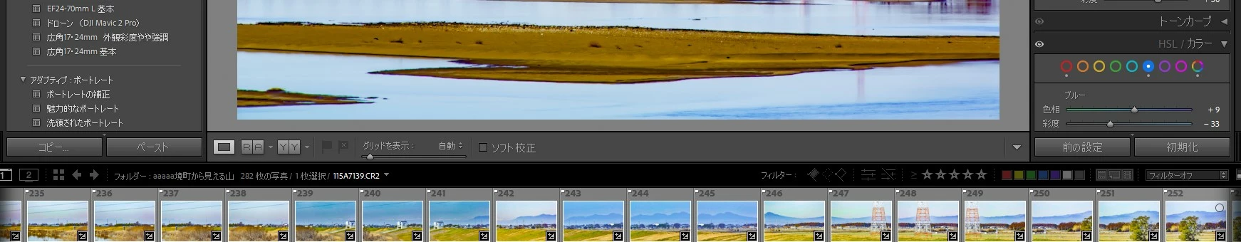 全てマニュアルで撮影した風景の連続写真をプリセットで同期しても数カットだけが異色になる現象