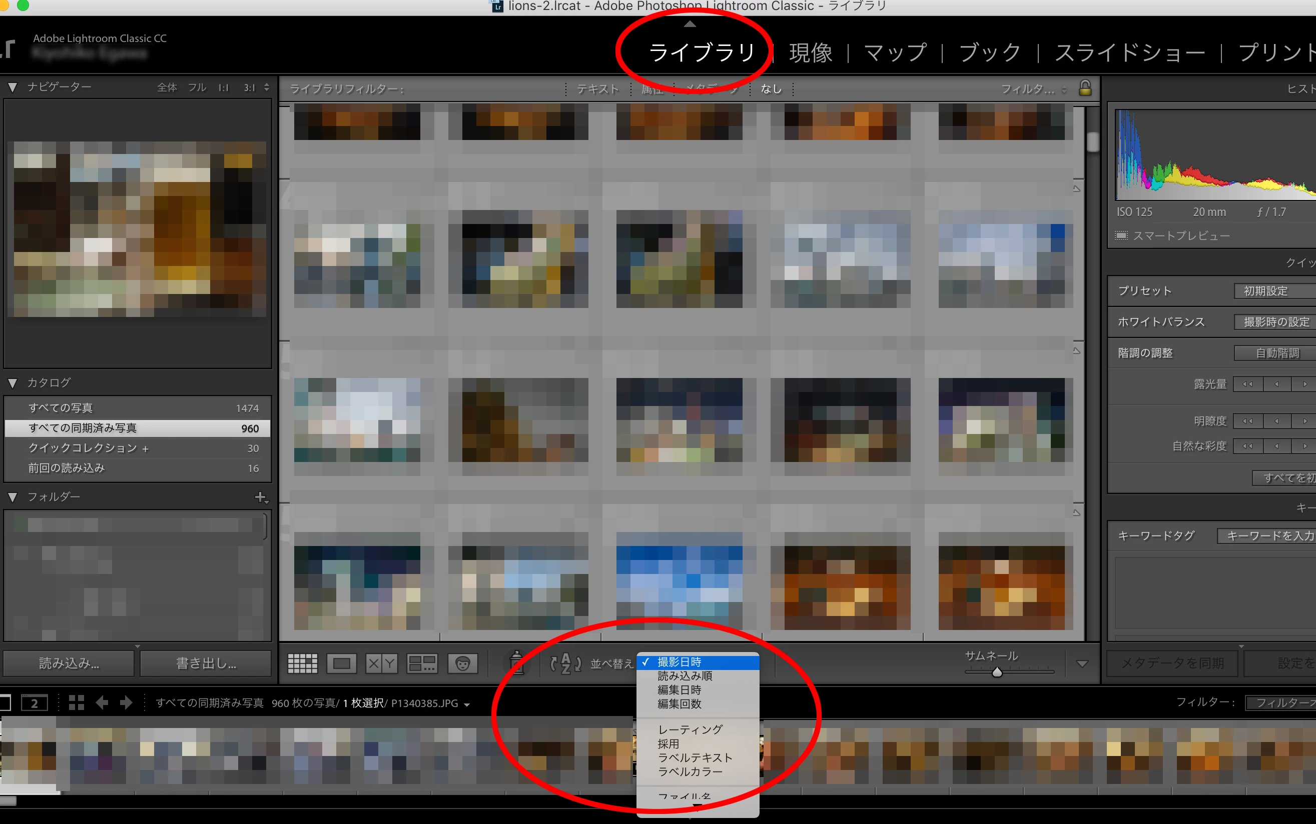 パッケージ版のライトルームを使っていますが、編集中に勝手に時系列からよく使うファイルに並べ変わってしまっている気がします。時系列に並び替えたいのに、ネットで検索してよく書かれている現像のところの下の並び替えタブは存在しません。どうやったら時系列に並ぶのか、デフォルトで時系列のまま崩したくない場合はどうしたらいいですか。