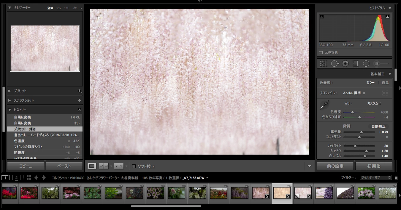 現像モジュールとライブラリ及びナビゲーターの色味の違い