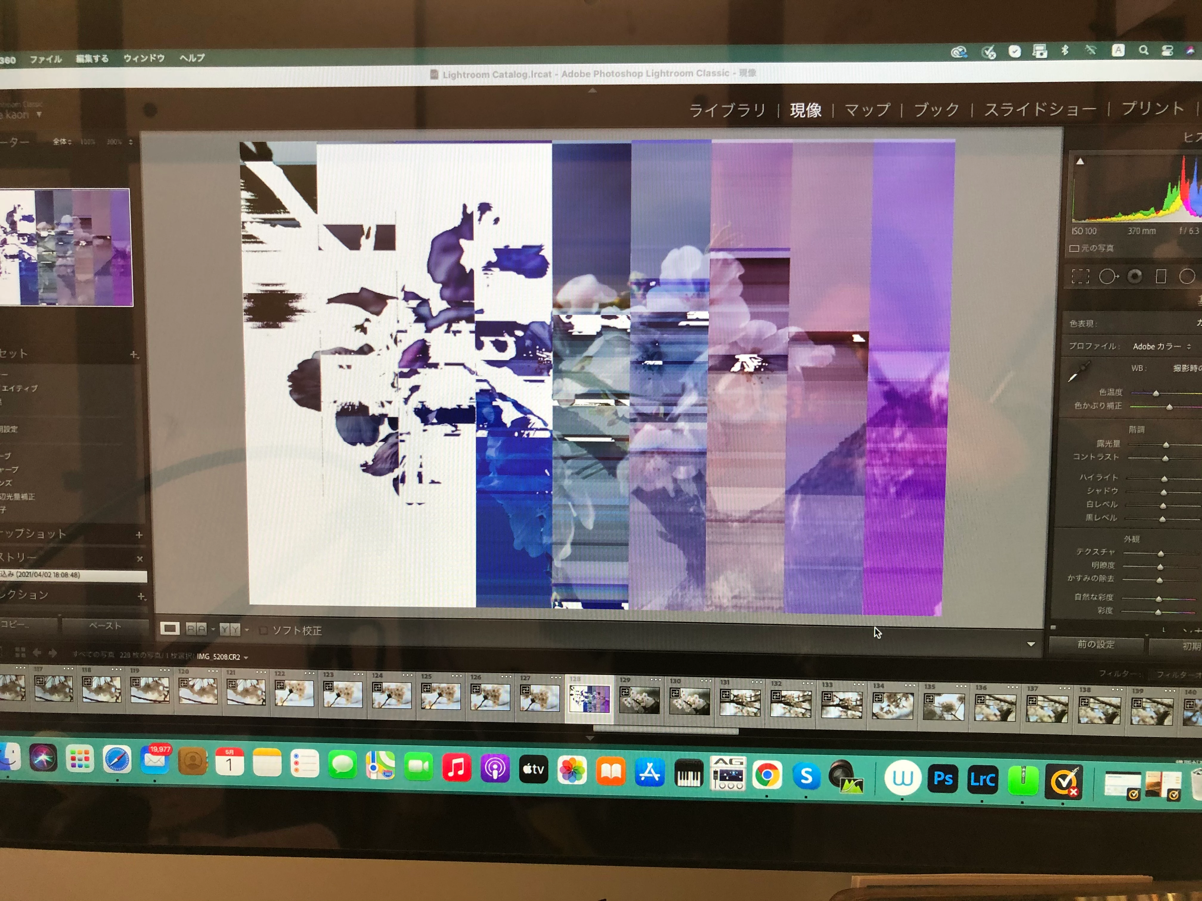 ライブラリの画面で乱れたかと思えば現像の画面では、戻ったり。また違う写真では、両方ともだめだったりします。
