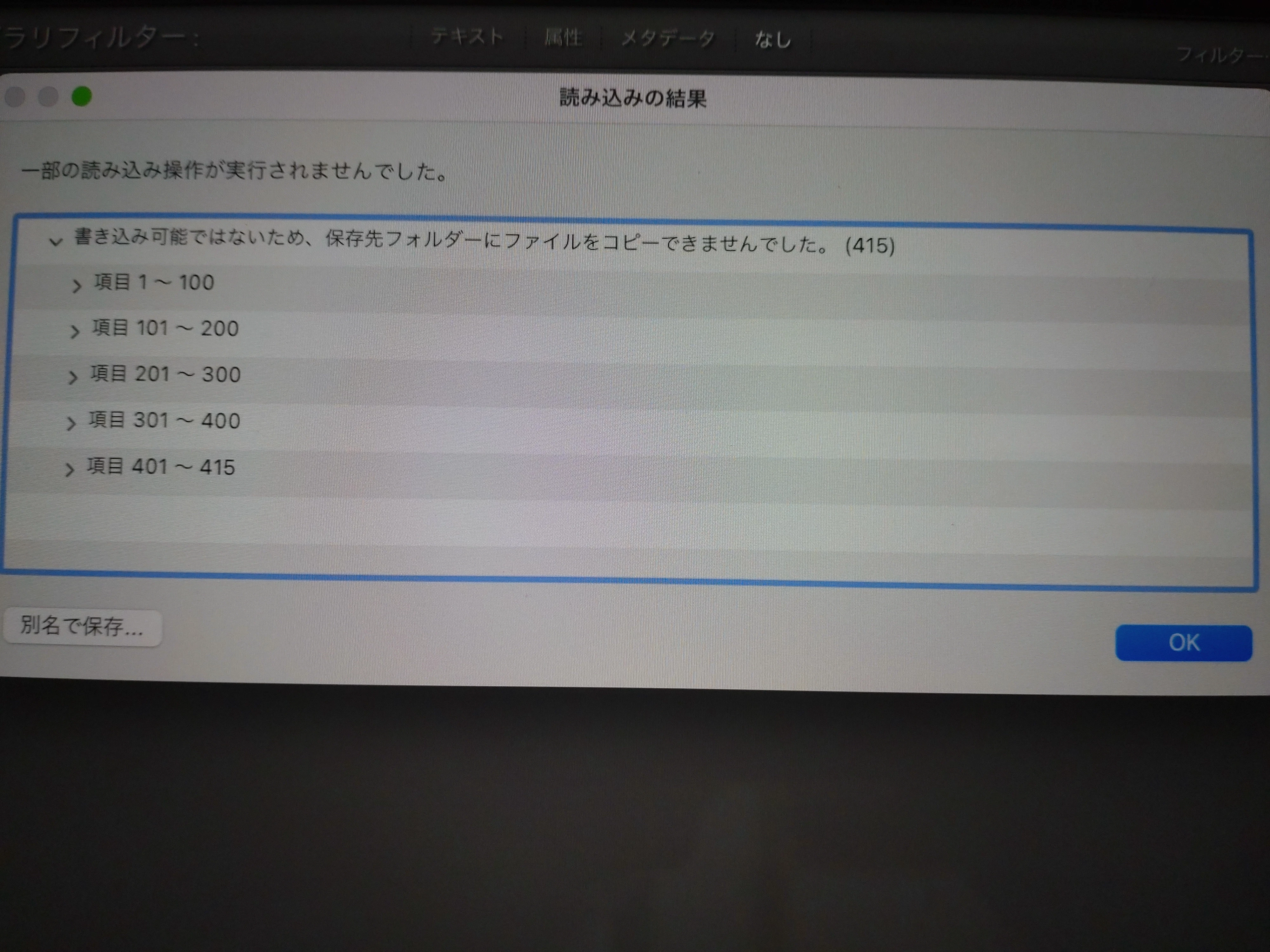 書き出し可能ではないため、保存先フォルダにコピーできません。と出て写真を読み込めません。それまではできていたのに、急に読み込めなくなりました。パソコンの容量がいっぱいになったのか、Lightroomの容量がいっぱいになったのか、別の原因か、わかる方教えて下さい。