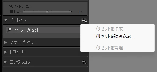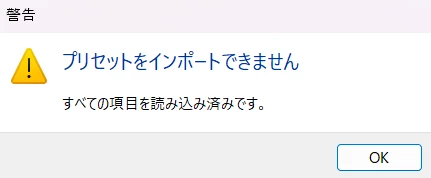 また、+をクリック、「プリセットを読み込み」に進んでも、「読み込み済」と表示されてしまいます。(画像添付2,3枚目)