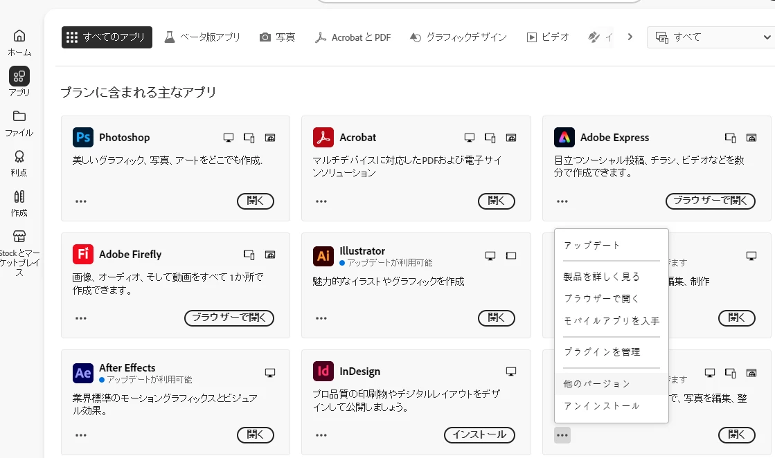 1つしか製品インストールしていないですが、「アプリ」でみると複数あります