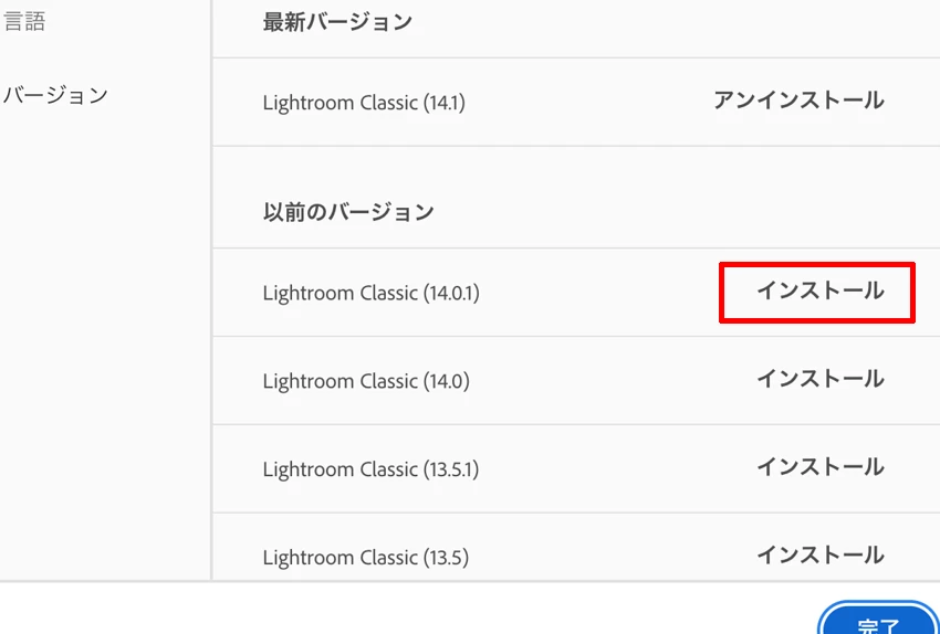 3.以下文書を参考にLightroom Classic を「他のバージョン」から「Lightroom Classic(14.0.1)」を選択してインストールします。