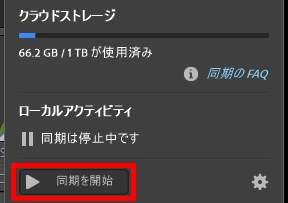 7.メタデータで現画像データの生成日時が元に戻ったことを確認したら、画面右上の雲マークを選択して「同期を開始」を選択します。
