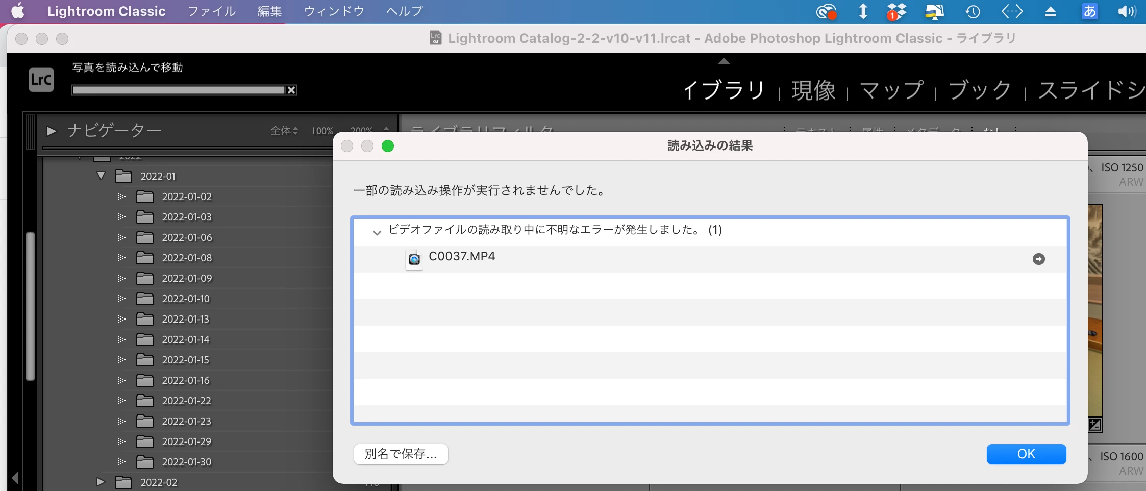 数ヶ月前には動画も写真と同様に取り込めていたと思いますが、保存先をクラウドのDropboxに変更した事が原因でしょうか?
