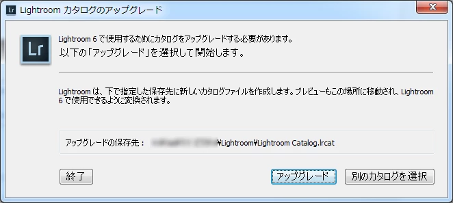 お決まりのカタログアップグレードのウィンドウが表示です。通常は旧バージョンからカタログを引き継ぎますので【アップグレード】をクリックですね。