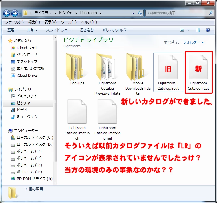 取り敢えず起動などは問題ないのですが、カタログファイルのアイコンが「Lr」から「白紙ファイル」になってしまったことが気になったので、もしや関連付けがおかしくなったかと思い