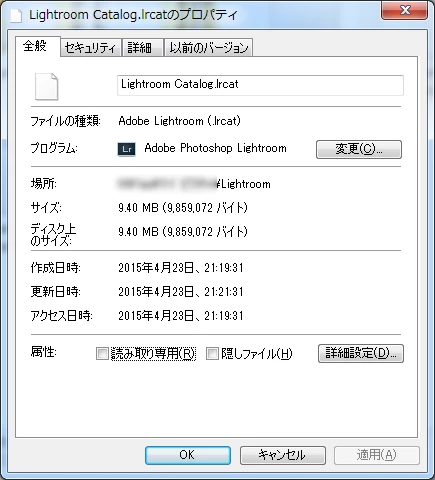 新バージョンのLightroom CC起動前に、既存のLightroom 5.7.1のフォルダの状態を確認してみました。(カタログファイルの保存場所は一般的なデフォルトの場所です)