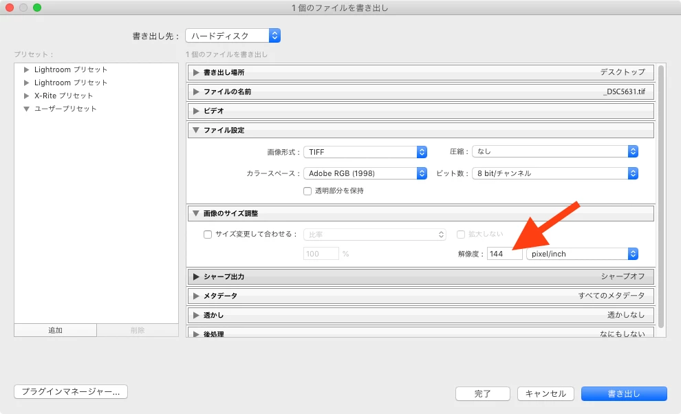 Lightroom でdpi設定の仕方が分からない