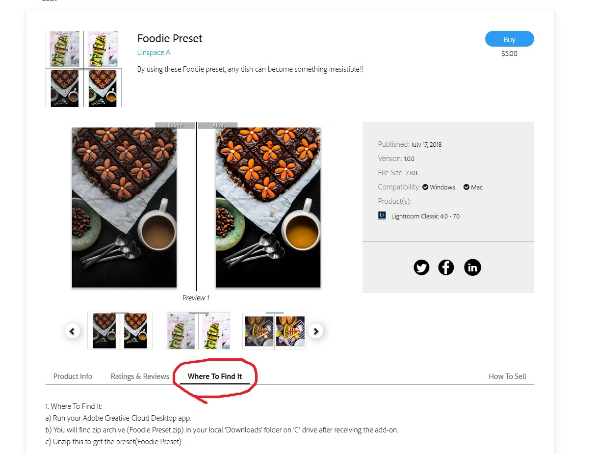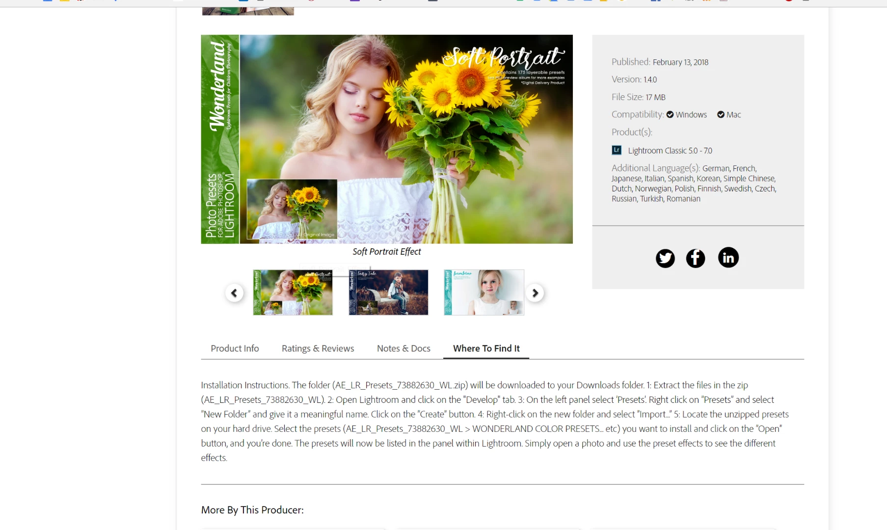 貼られている URL は Lightroom 用プラグインのトップページですね。購入されたプリセットの URL を教えていただけますか?各プリセットのページで「Where to find it」というタブを開くと、そこにインストール手順が明記されていると思います。(英語ですが。)