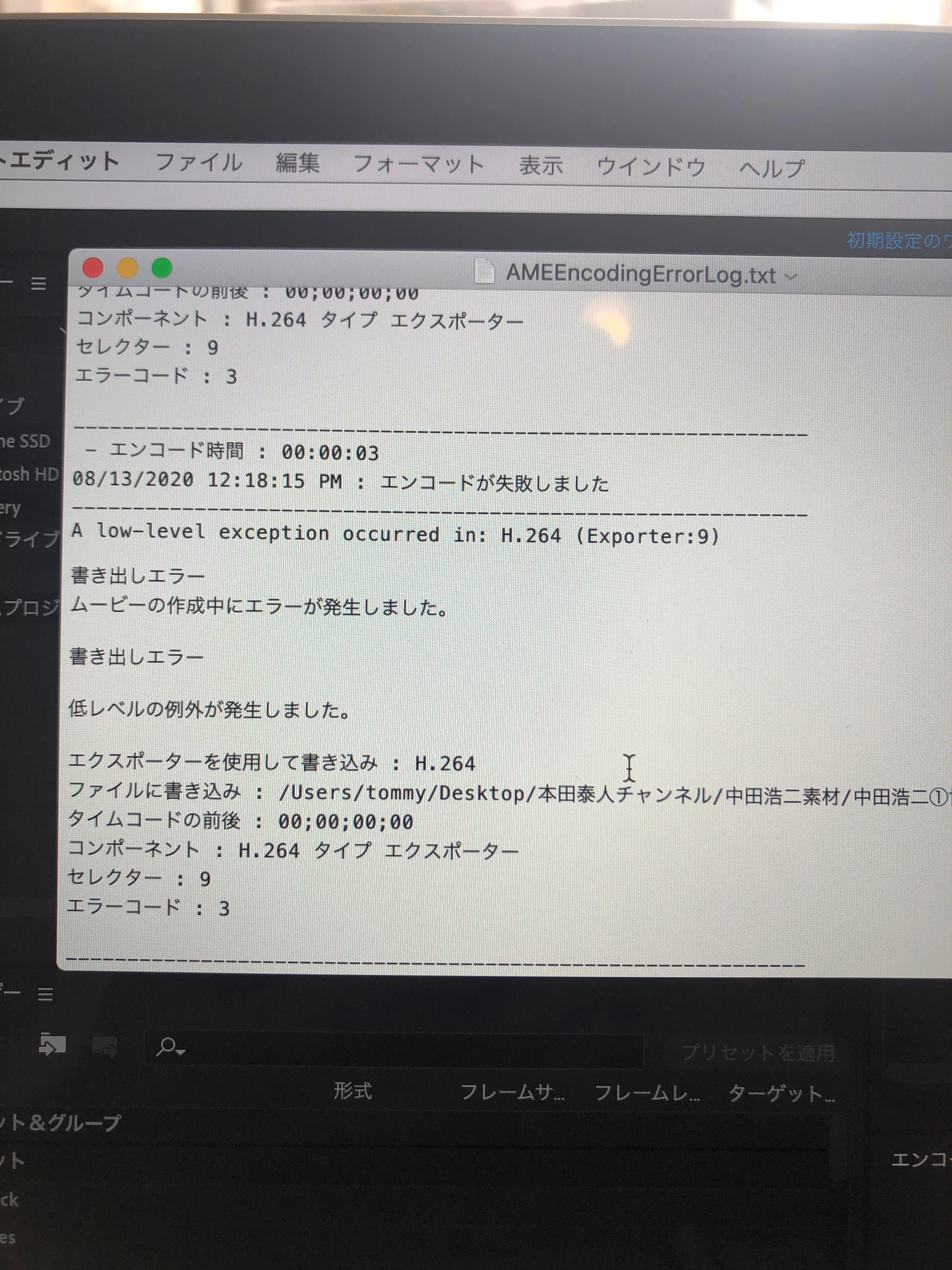 涼涼介5E88ParticipantForum|Forum|5 years agoAugust 13, 2020Questionメディアエンコーダー、低レベルの例外Forum|Forum|5 years agoAugust 13, 20201 reply864 viewsメディアエンコーダー、低レベルの例外というのが毎回起こります。 ちなみに、他のプロジェクトの動画はエラーなく書き出しできるのですが、問題のプロジェクトのみ何回やってもエラーになります。 何が原因か分かる方いれば教えて頂けると助かります。エラーまたは問題