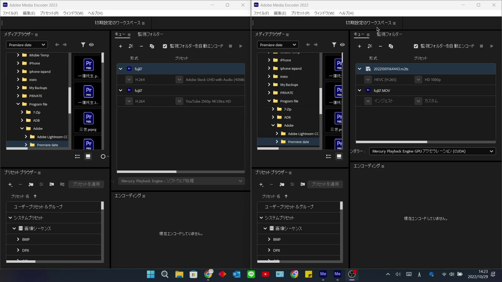 添付した写真のように、Me2022ではハードェアエンコードの選択ができる状態であるのに、