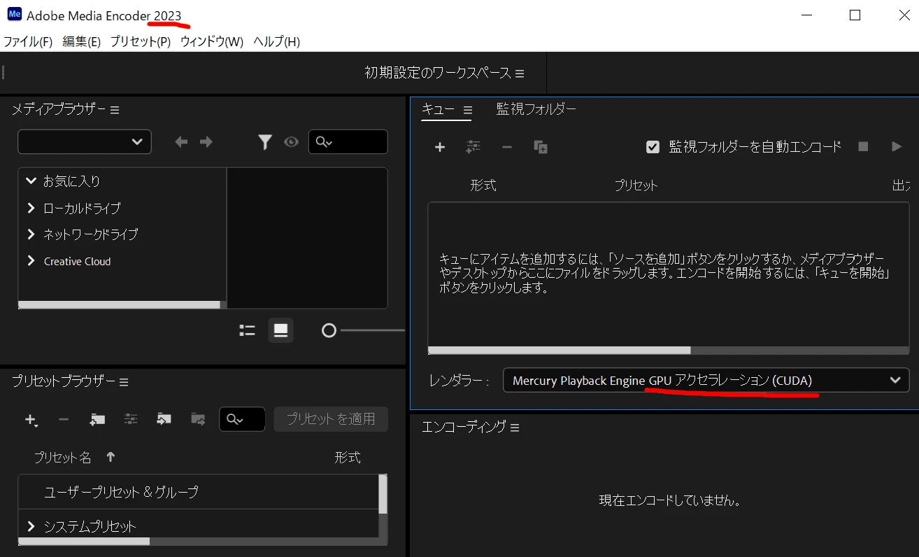 Premiere Pro Ver.23.0の方でも、本来GPUによるレンダリングができるはずの環境でGPUレンダリングができないという症状が出ているようなので、バグの可能性があるかもしれません。