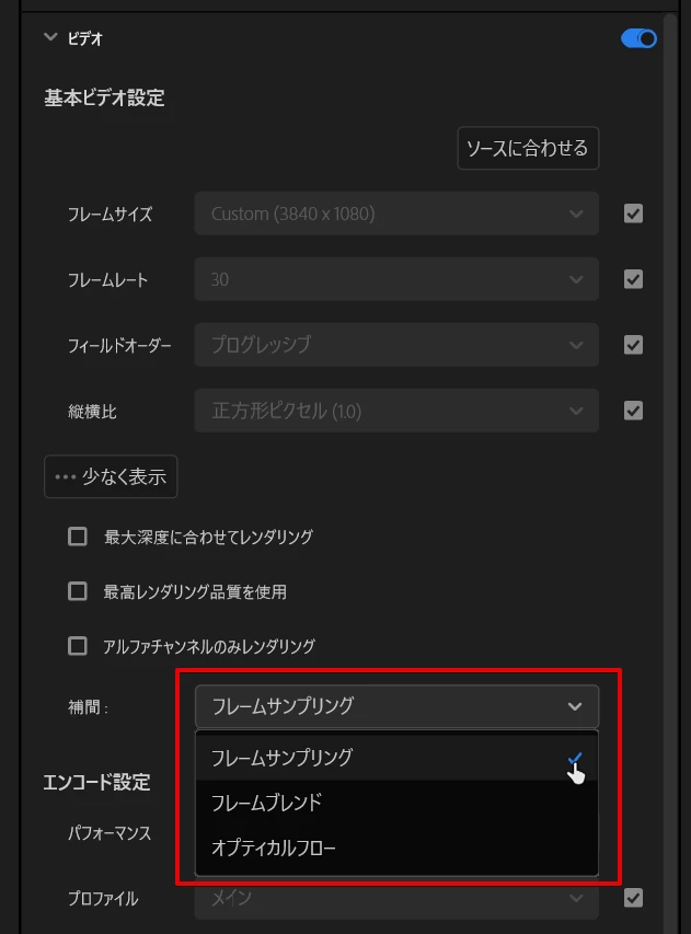 その上でですが、24fps→30fpsはどうしてもコマが足りなくなるので、