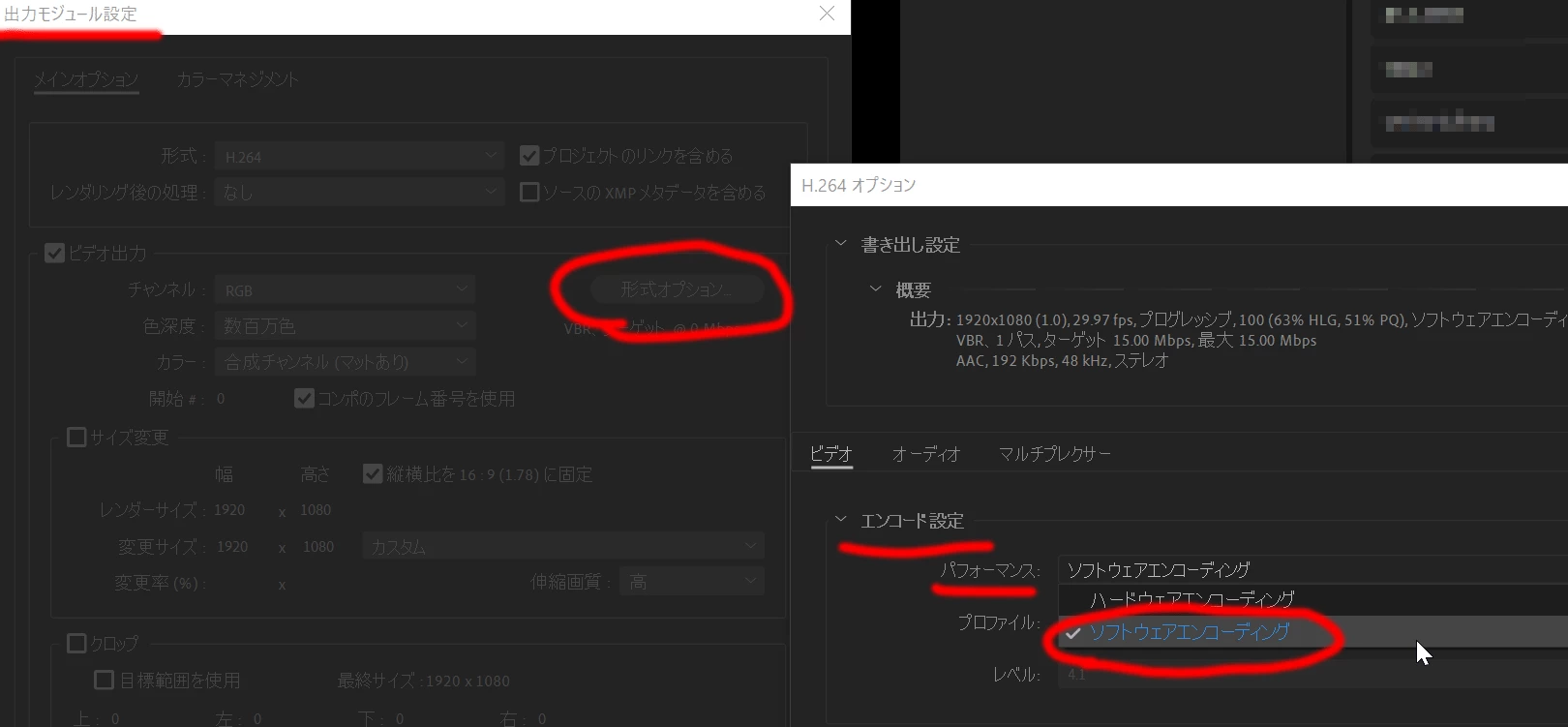 H.264形式で書き出す際にエラーが発生してしまします。以下、具体的な内容と試したことです