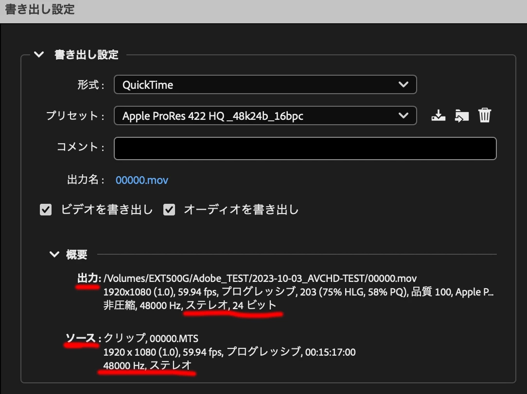 Media EncoderでAVCHDをmov変換すると音声がない-mac-