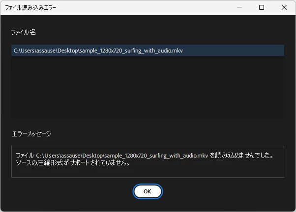 mkvファイルが読み込めません 公式では対応できると書いてあります
