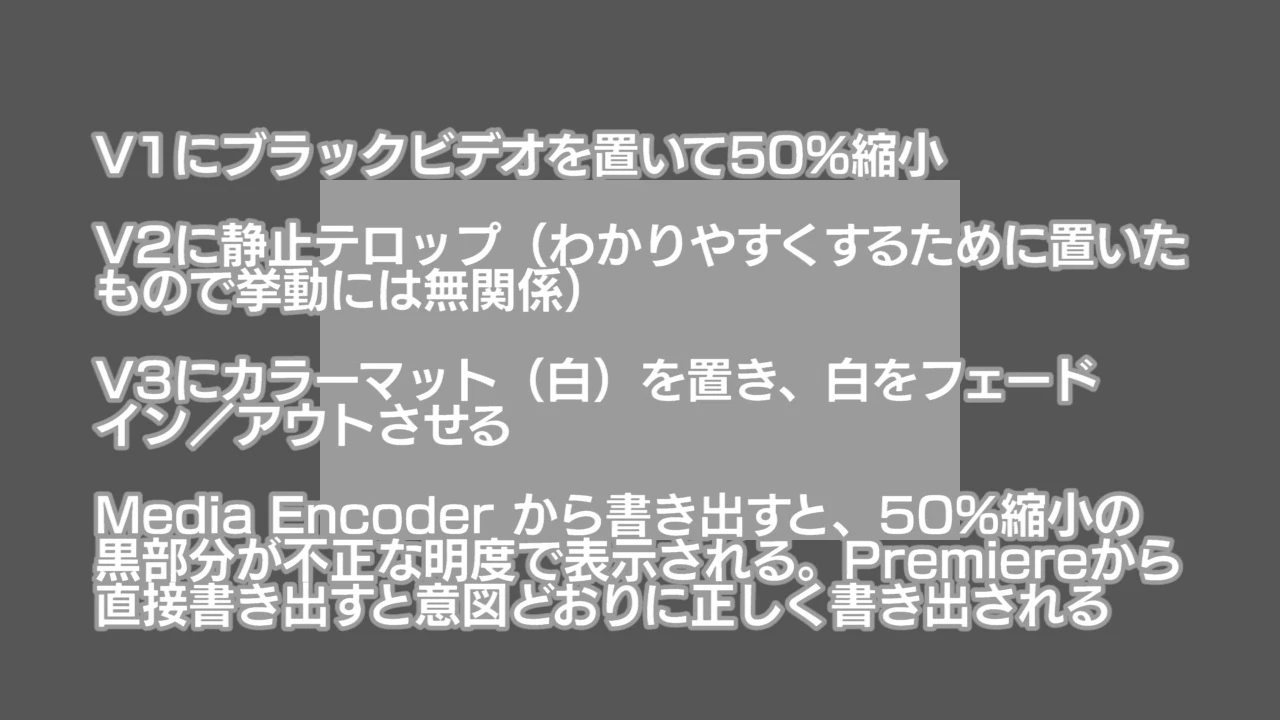 Media Encoderから書き出すと、50%縮小した黒部分が不正な明度で表示される(fig2)。