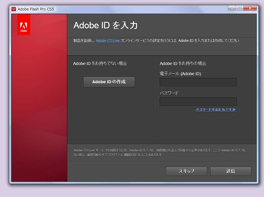 Adobe IDにシリアルナンバーを登録したい