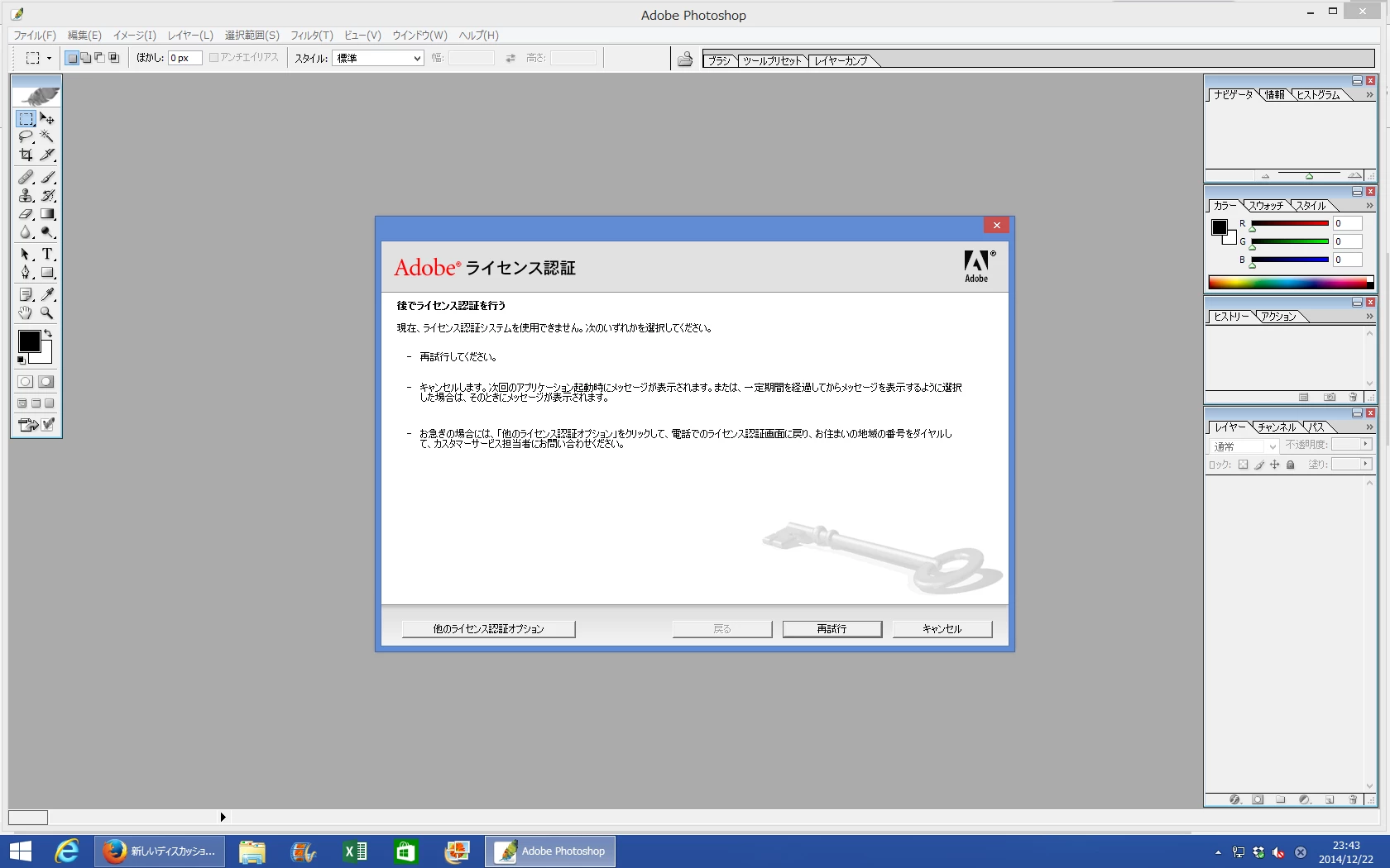 Creaive Suite Premium のPhotoshop CSを新しいPC(OSはWindows 8.1)にダウンロードして60日が経過して…ライセンス認証を求める画面が出てきて使えなくなりました。