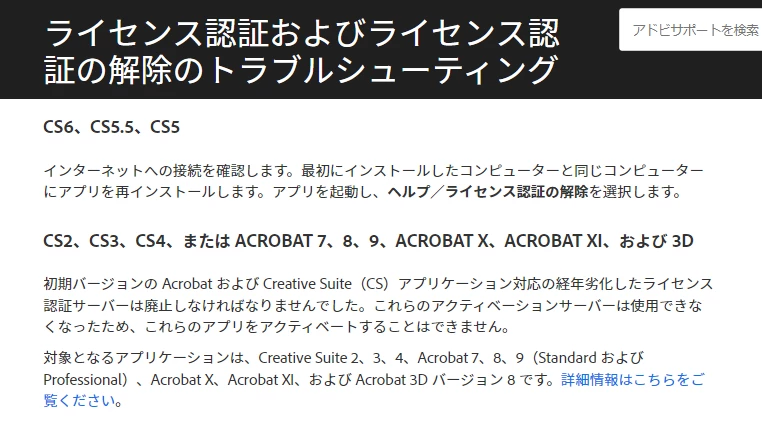 Creative Suite 3 (CS3)および Acrobat 8の正規ライセンスを所有しているが、ライセンス認証が行えない。