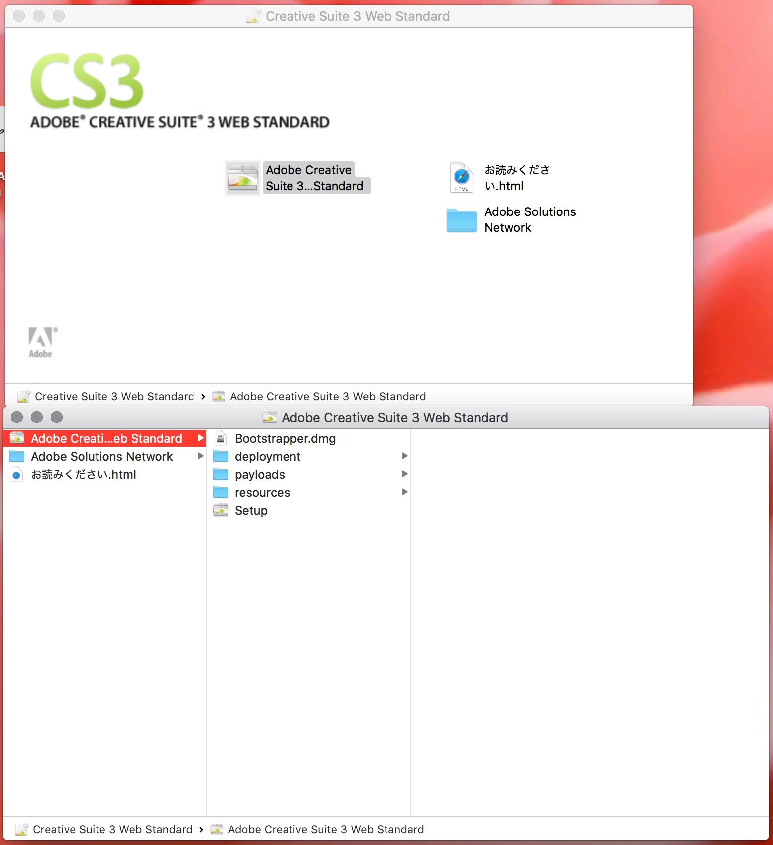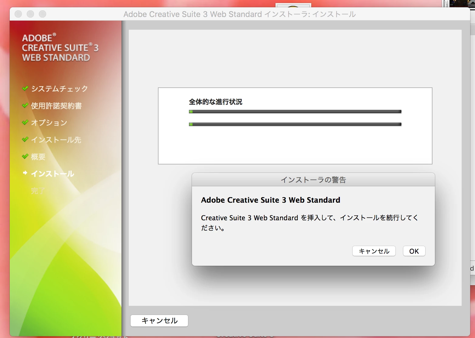 このように、Creative Suite 3 web standardを挿入して、インストールを続行してください、