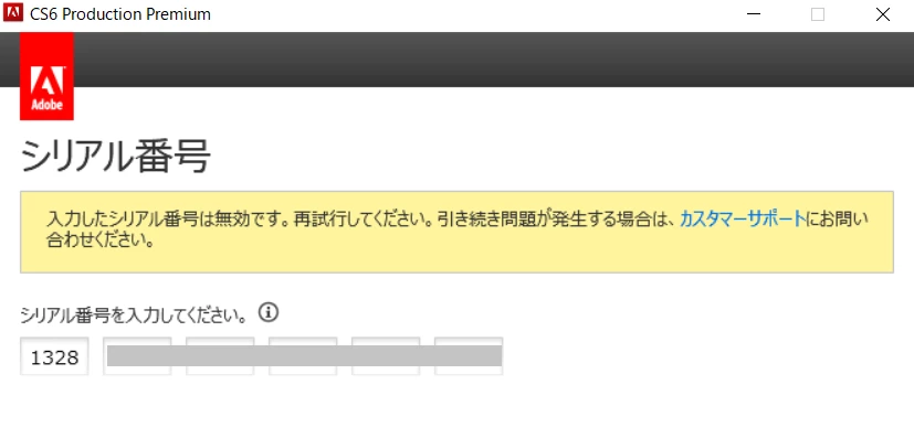CS6 Production Premium シリアル番号が無効と出る件