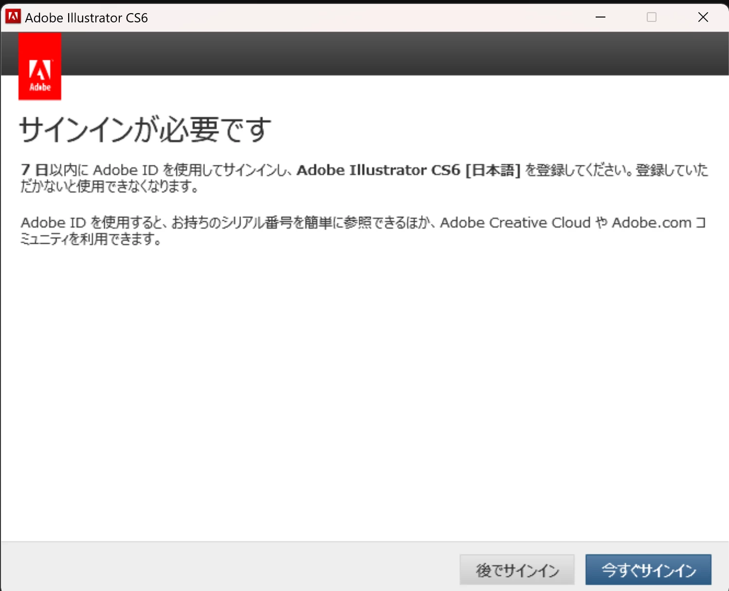 illustrator CS6をAdobe IDにサインインし登録したにも関わらず、サインインの要求をされる