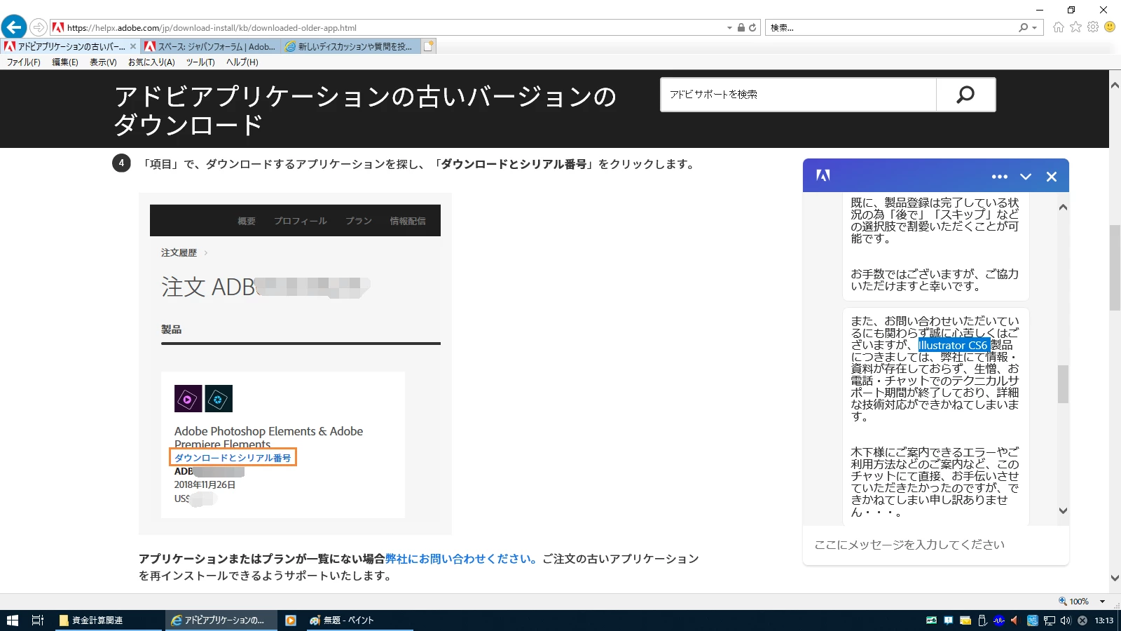 チャットでご相談したところ、テクニカルサポート期間が終了しているため、