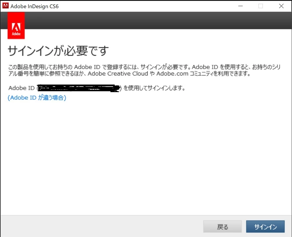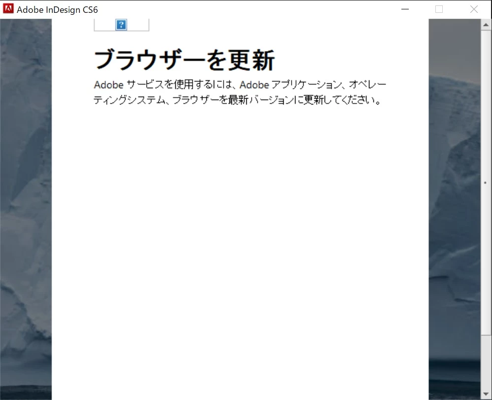 InDesign CS6 「サインインが必要です」画面でID変更しようとすると「ブラウザーを更新」画面が表示され変更できない