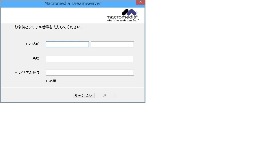 Macromedia Dreamweaver MXやMacromedia Fireworks MXを起動しようとしたところお名前とシリアル番号を入力してください。と表示されて一切使用できなくなってしまいました。