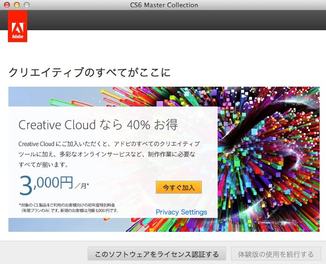 購入してから少し経ってCS6にバージョンしました。
