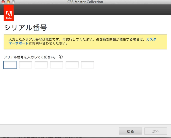CS6製品のインストール時にシリアル番号が通らない時の対処方法