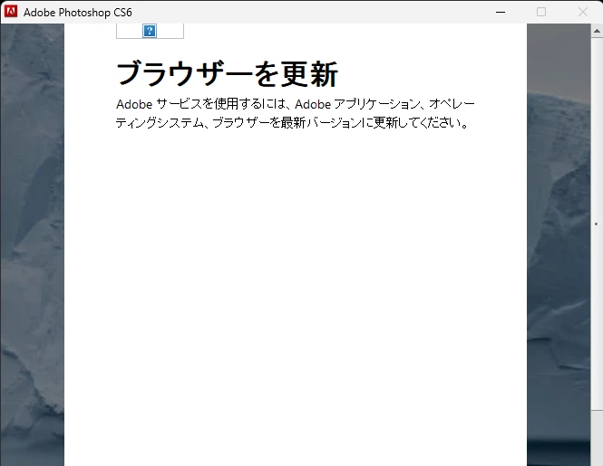 Adobe サービスを使用するには、Adobe アプリケーション、オペレーティングシステム、ブラウザーを最新バージョンに更新してください。