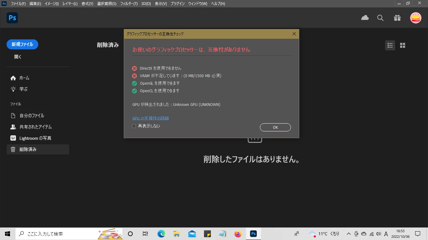 互換性がないとエラーメッセージが表示され、古いドライバーを更新しましたが、改善しませんでした。