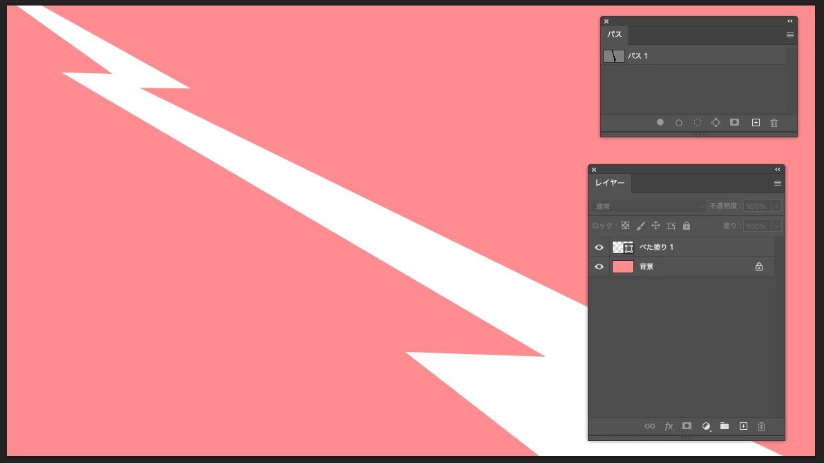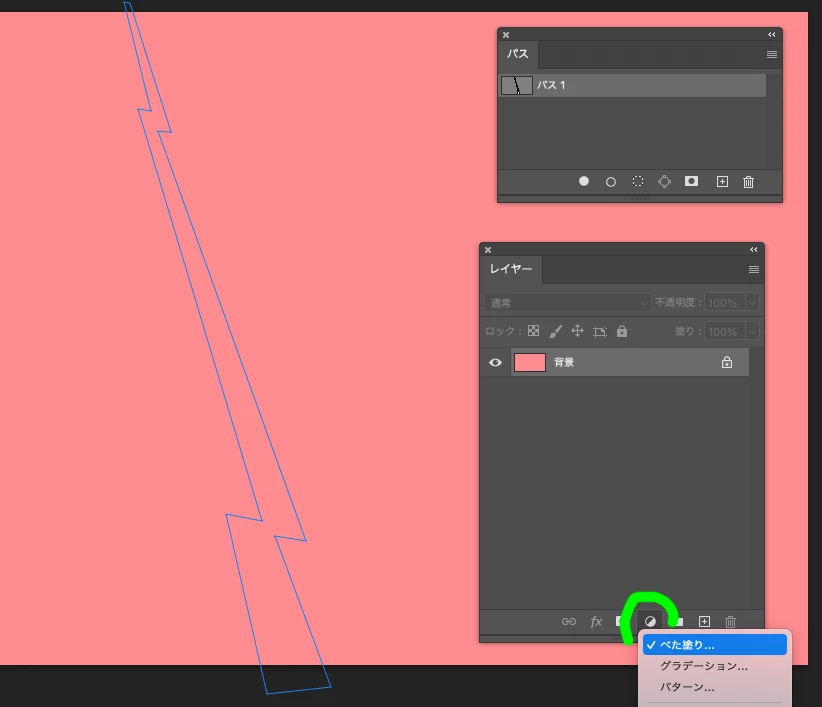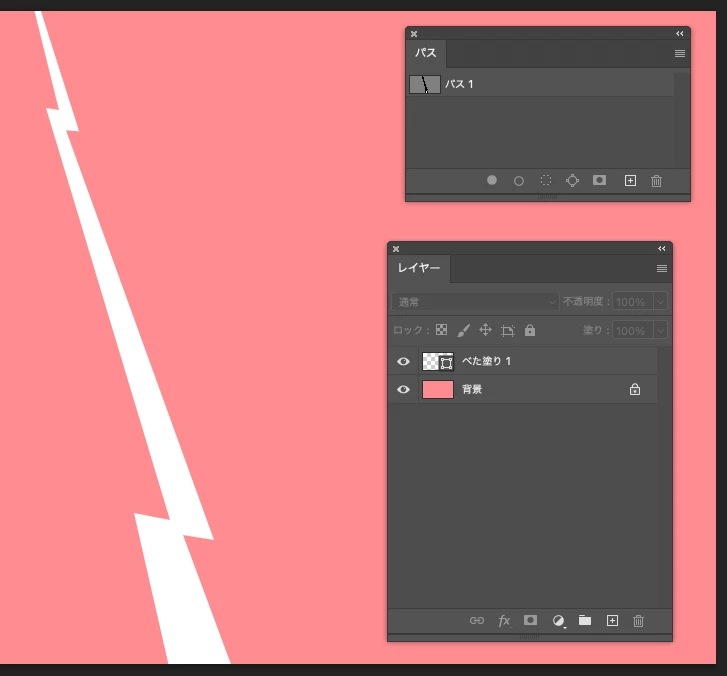 ①「ペンツール」でギザっている白い線の外形のパスをを描きます。