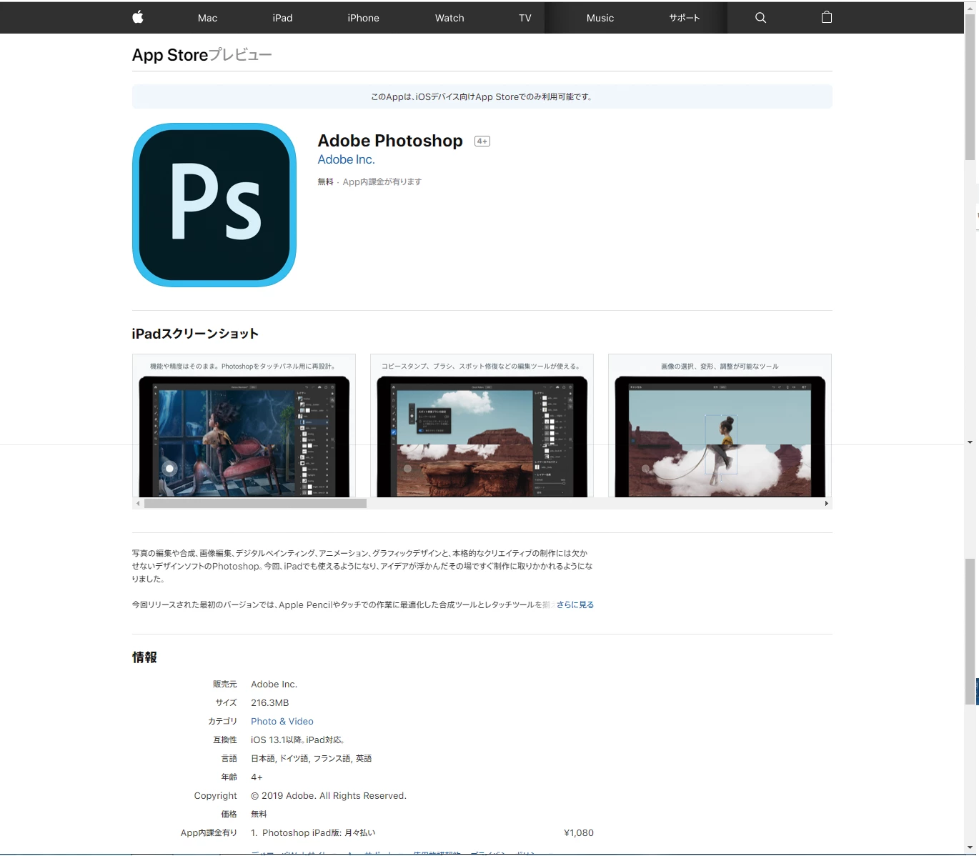 ついにiPad版Photoshopリリースされました!