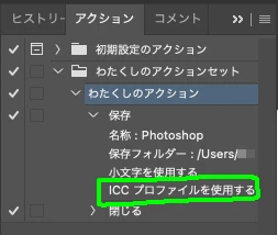 アクションを使用してpngを保存するとカラープロファイルが外れる