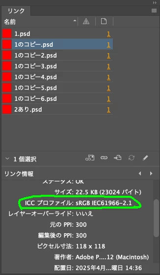 最初の一枚はカラープロファイルが埋め込まれますが、それ以外は埋め込まれずに保存されます。