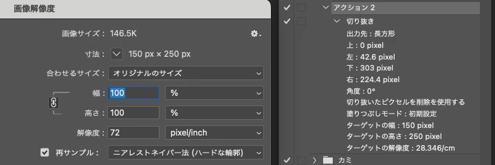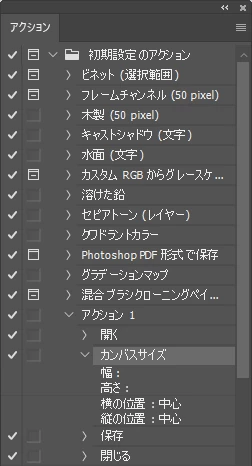 Photoshop 27.5のアクションで「カンバスサイズ」の数値が記録されない