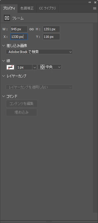 1.フレームツールでトリミングしたいところを囲む。プロパティウィンドウで一応、数値入力できる。