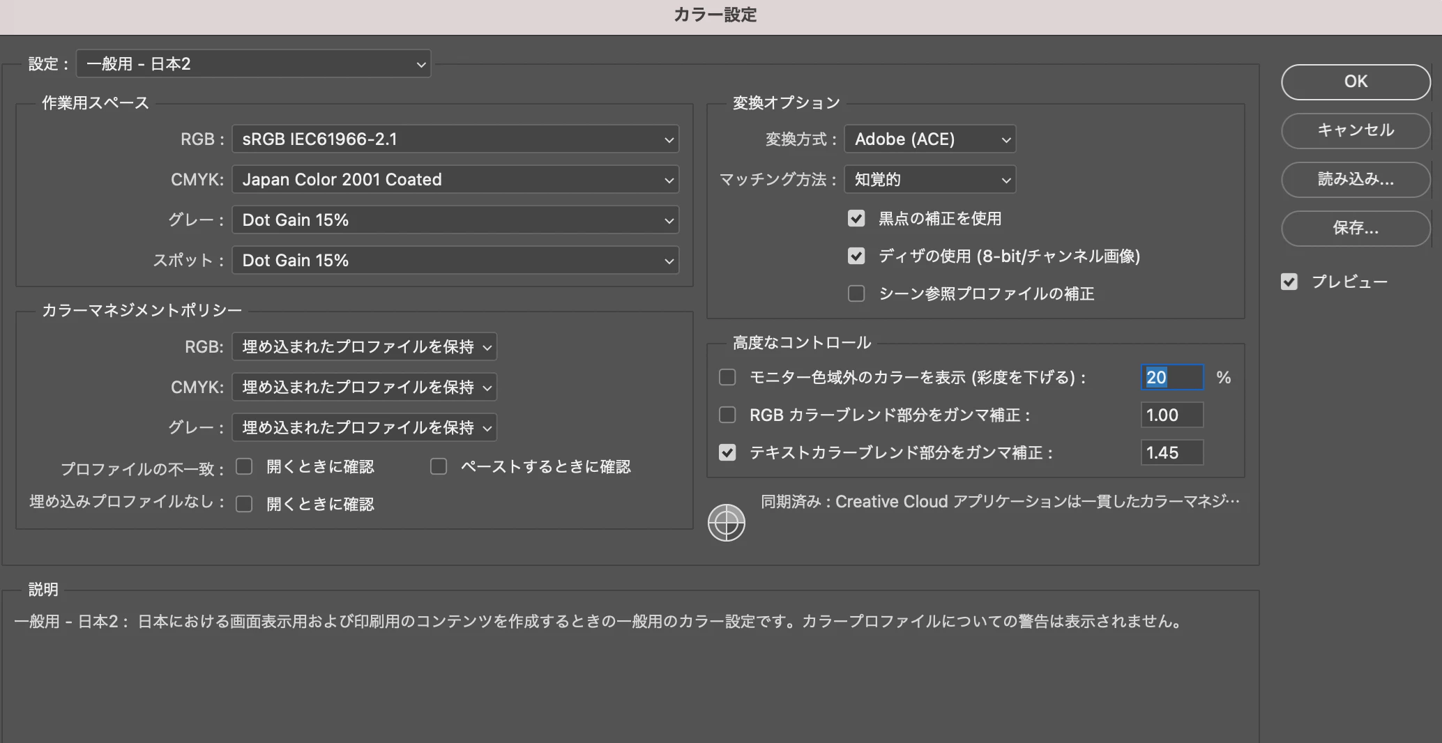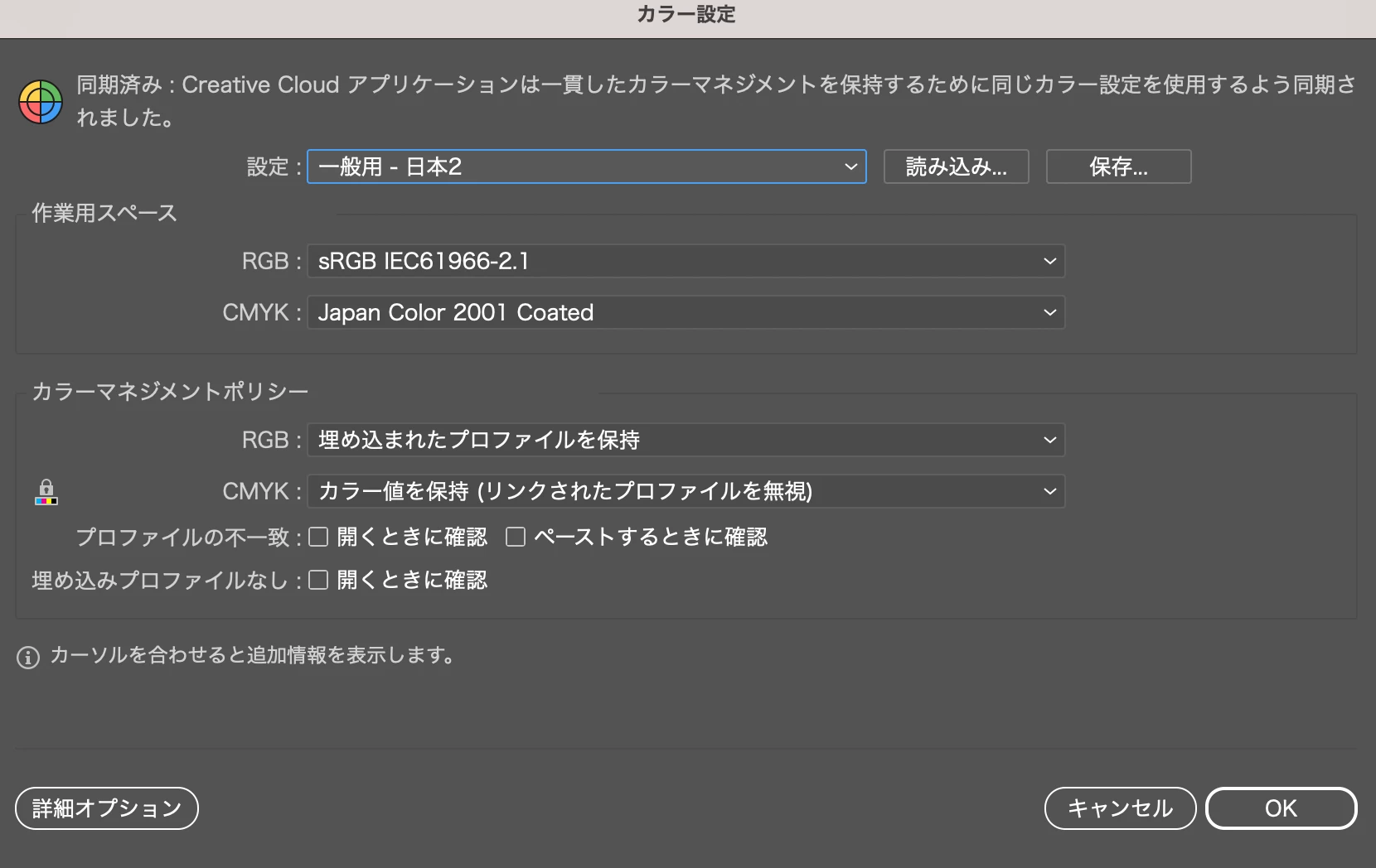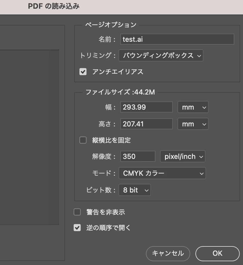 「ICCプロファイル(Japan Colou 2001 Coated)の埋め込み」の有無はどちらも確認しましたが結果は変わりませんでした。