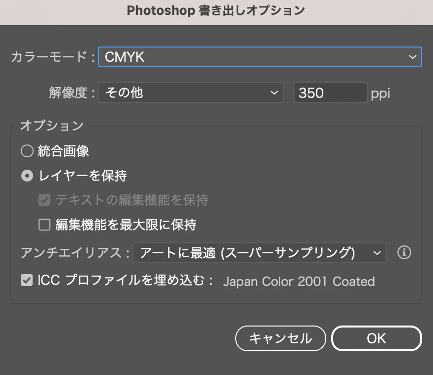 ②psd形式で書き出し(CMYK / 350ppi)